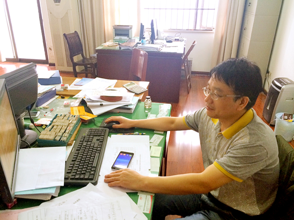 走進財務部的辦公室,周家煌的辦公桌上的擺設一目了然:桌面整潔干凈,桌上的文件排放的整齊有序。左上角壘起來的倆堆書籍,其一是《財務會計》、《中國稅務》等財務專業(yè)的雜志;另一堆書籍置于頂部的是《計算機財務管理:財務建模方法與技術(shù)》,往下的是諸如《計算機辦公軟件應用》、《信息時代的財務創(chuàng)新》等。